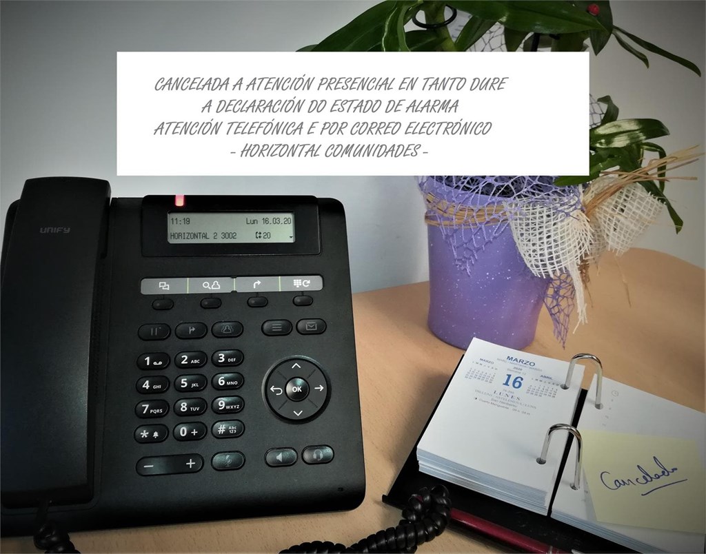 Debido a la declaración del estado de alarma y a las limitaciones para la circulación de personas, desde Horizontal Comunidades informamos que seguiremos prestando nuestros servicios a través del teléfono y el correo electrónico.